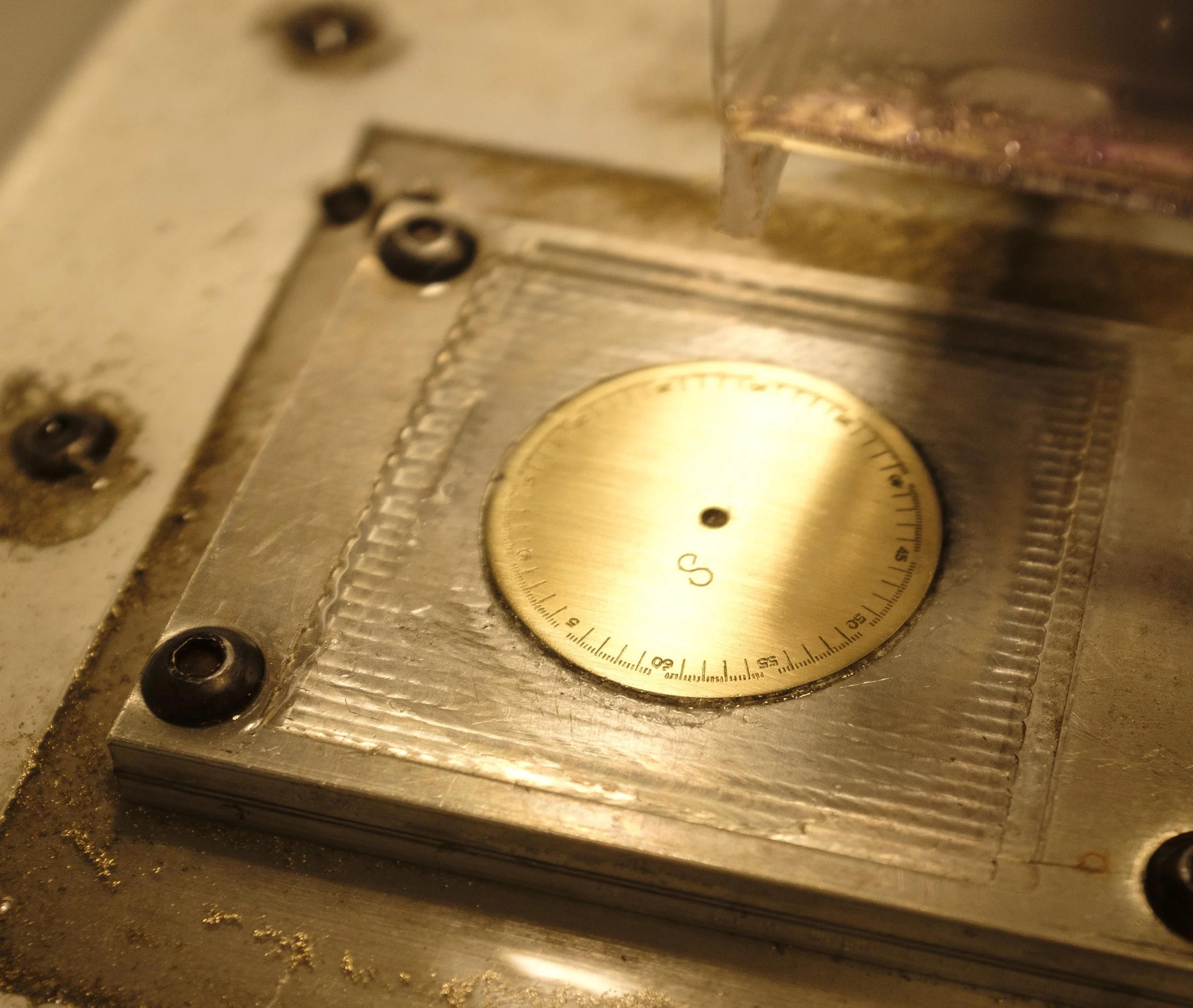 The older watches which I based this design on have luminous powder and a fixative on the dial markings and hands. I had assumed that it would be fairly easy to apply a powder into the cut markings i’ve been making in the dial which is why I chose that method of creating the dial design in the first place but oh boy, it’s tricky.